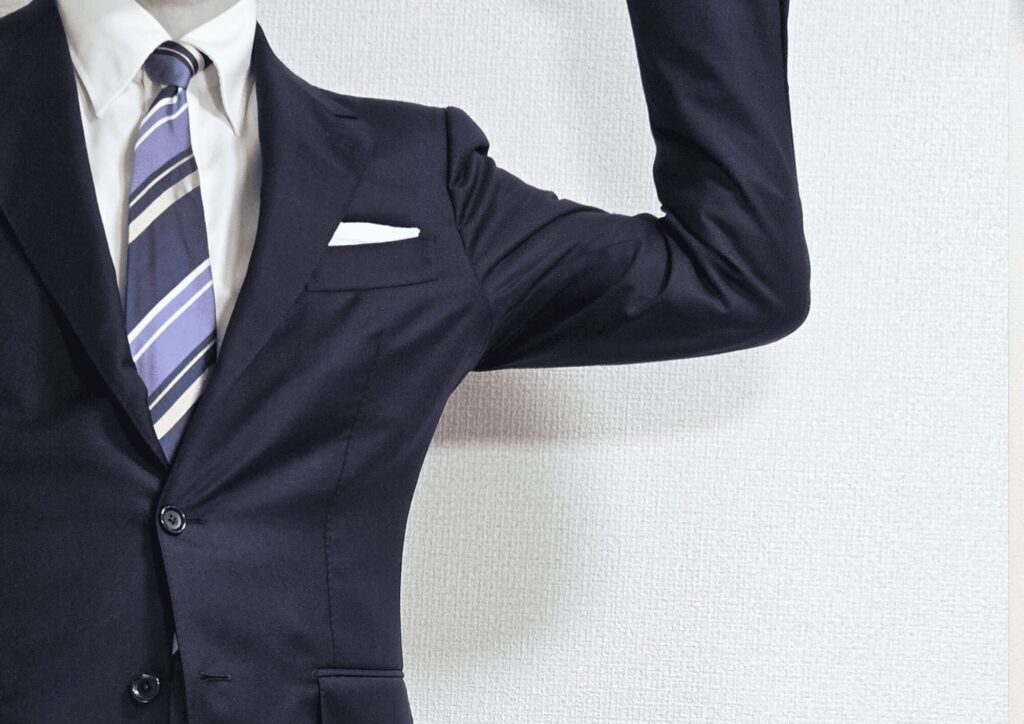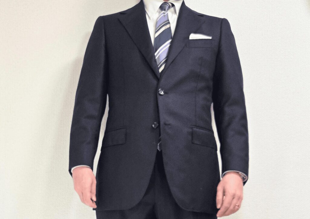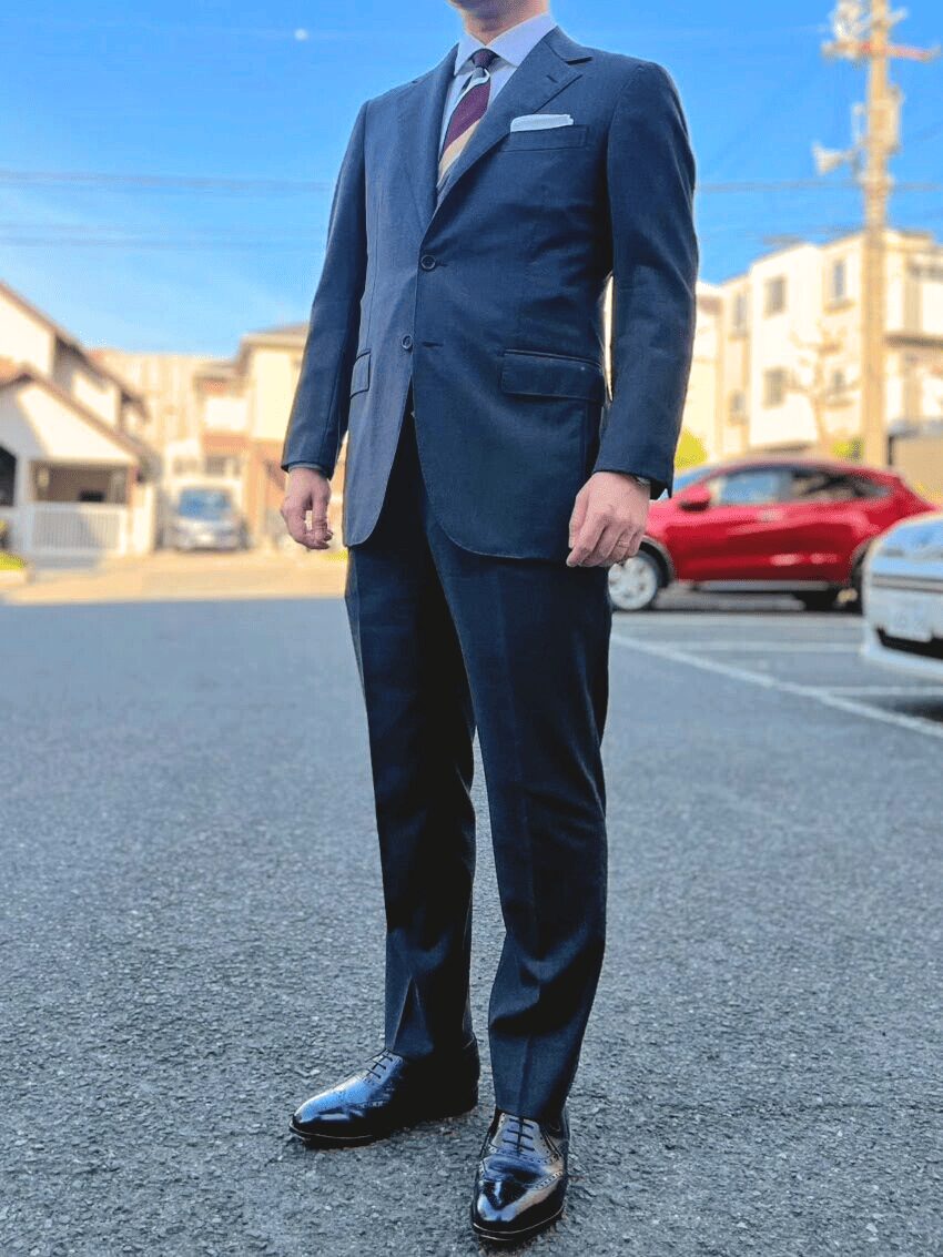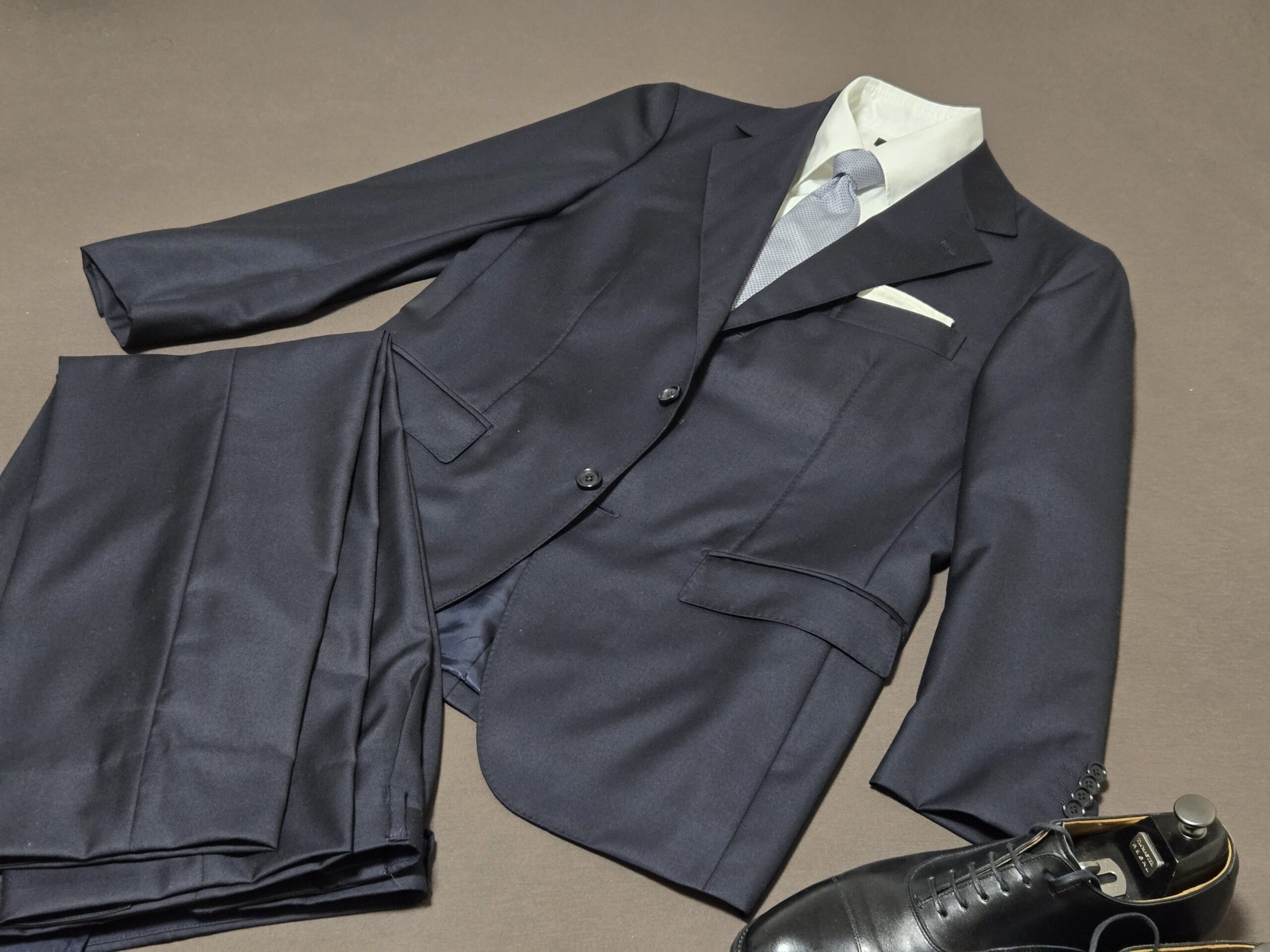 何の変哲もない、「ザ・普通」のネイビースーツ。